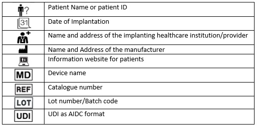 | Implantatkarte für Patienten - Rückseite | Beispiel eines Geräteetiketts ![]() |